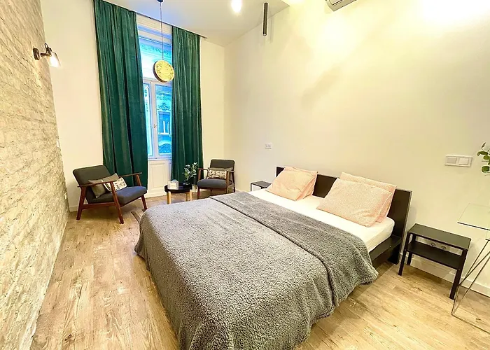 Dieses Apartment ist in einer 3 km Entfernung vom Gellértbad sowie in rund 400 Meter Entfernung von der Ungarischen Akademie der Bildenden Künste gelegen. Dieses 117 m² große Apartment befindet sich im Stadtteil 06. Terézváros. Die Margareteninsel ist in einer 2 km Entfernung von dieser Unterkunft.